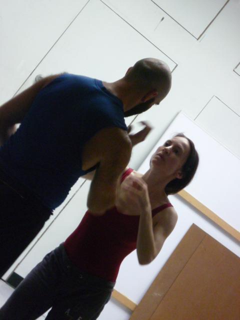 Monday August 23, 2010 – A rainy, cool day: perfect for watching dancers in the studio. Choreographer John-Mark Owen is preparing for an appearance at the DanceNOW Festival on September 9th and today he working with dancer Julie Voshell on his duet Unam Ceylum, set to music of Heinrich Biber.