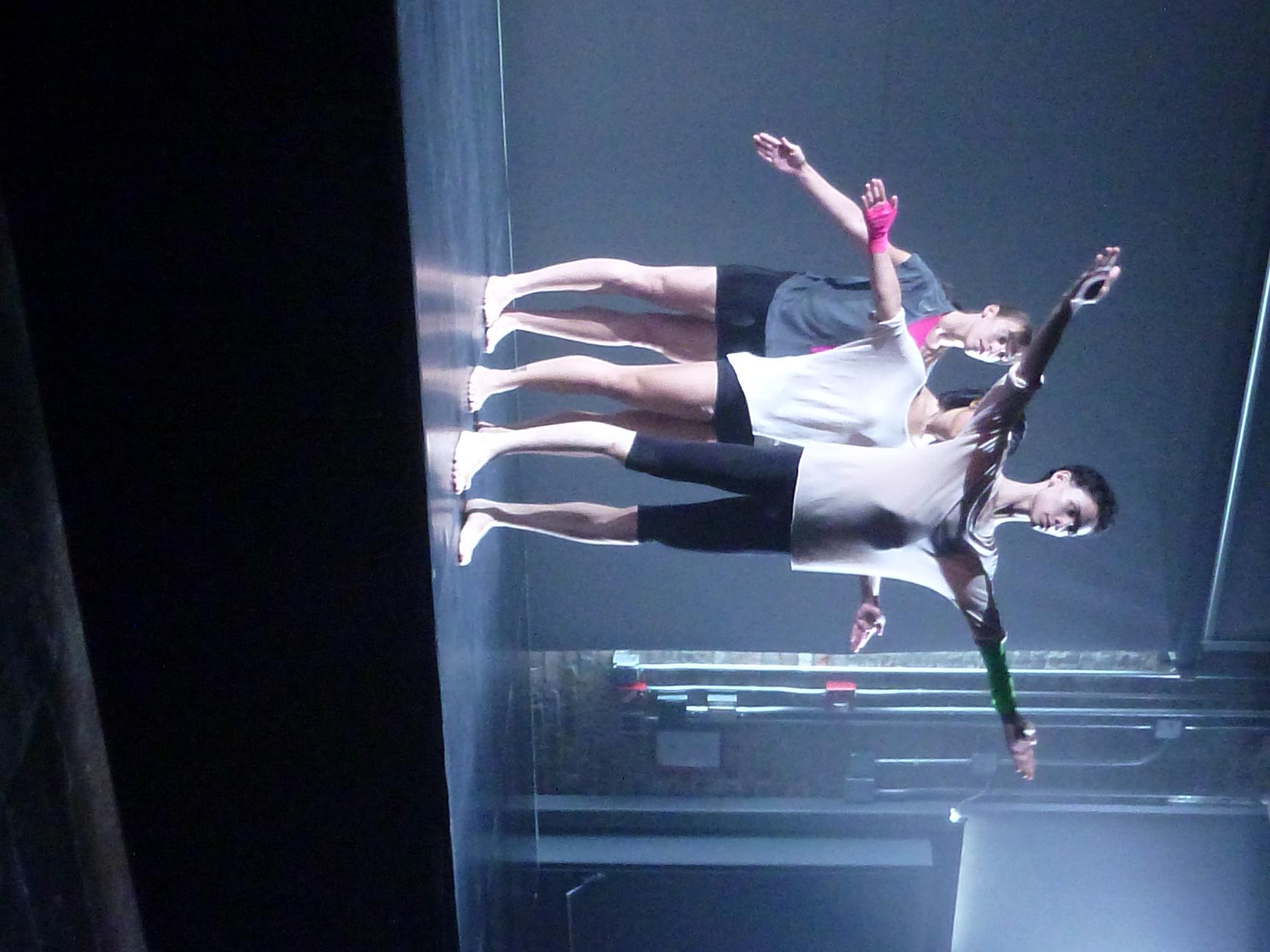 The installation, which occupies the entire wide open theatre-space of the Cedar Lake venue, features a dynamic composed-and-compiled score by Mikael Karlsson and superb lighting by Amith Chandrashaker. Sidi Larbi Cherkaoui and Cedar Lake dancers Harumi Terayama And Manuel Vignoulle were involved in the choreographic design.