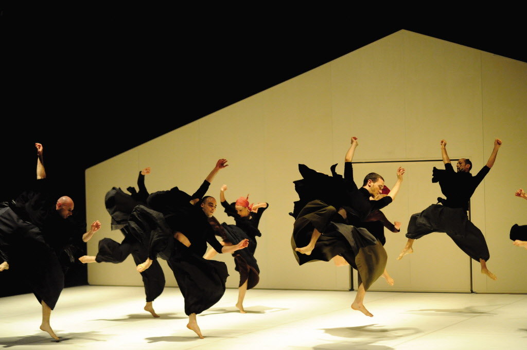 In Noa Wertheim’s MANA (photo above by Gadi Dagon), Vertigo Dance Company from Israel featured eight dancers in dark-toned long tunics, skirts and wide-legged trousers dancing before a beautifully lit silhouette/facade thru the door of which they come and go. With folk-like motifs of circular patterns and casually organized duets, the movement feels both spontaneous and ritualistic. Ran Bagno’s mid-East fusion score is rhythmically varied with some quirkly instrumentation; it is pleasantly innocuous and eventually unmemorable. The dancing was excellent and the dancers deserved the enthusiastic response of the audience, but the work would make a more persuasive statement if it were pared down a bit. It gives the impression of someone who goes on talking after his point has already been made.