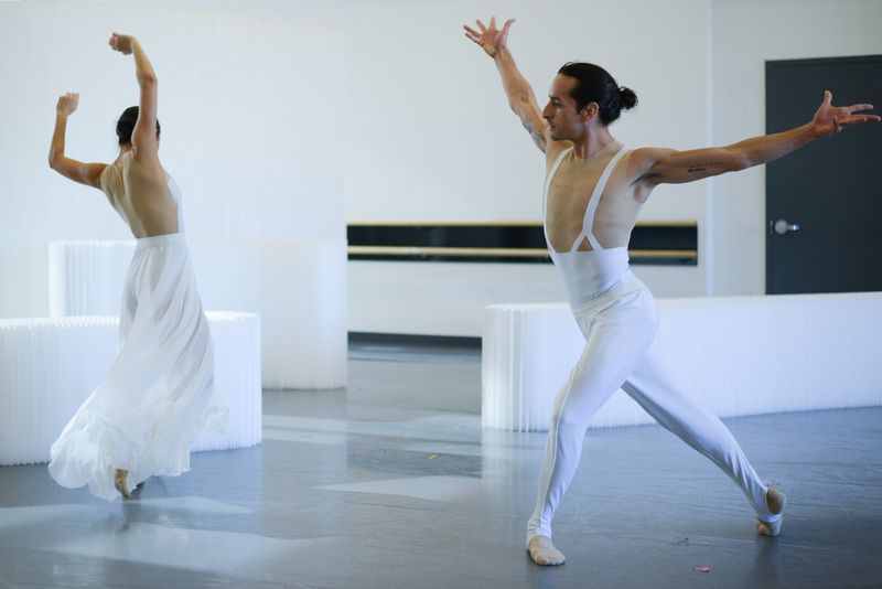 Above: Ballet Hispanico‘s Chris Bloom and Kimberly van Woesik in rehearsal for CARMEN.maquia Photo: Nir Arieli