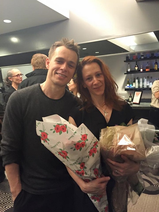 Afterglow: Tadej Brdnik and Blakeley White-McGuire basking in the affectionate admiration of friends and fans after the performance. Photo courtesy of Karen Brounstein.