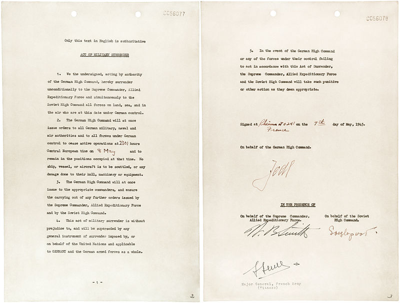 Above: the instrument of surrender, which ended the war in Europe.