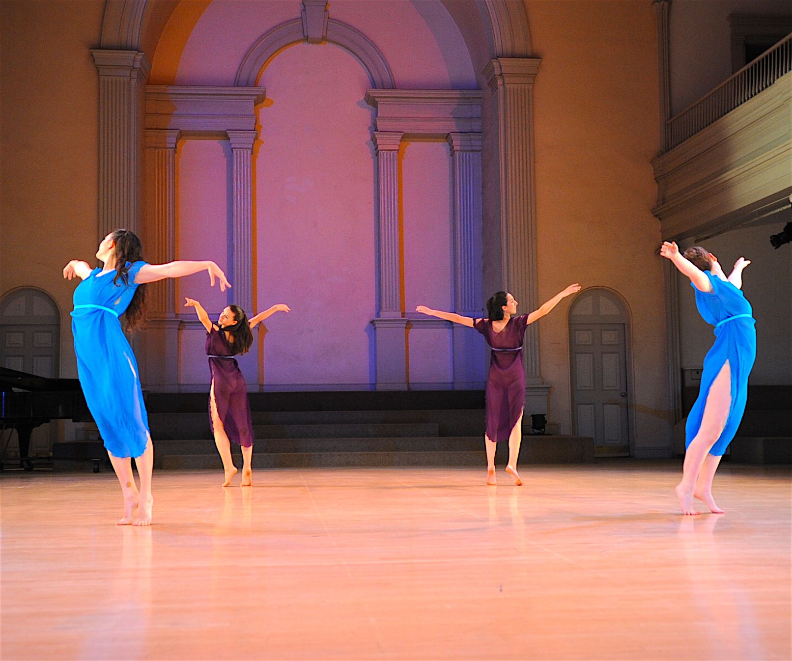 Ms. Gallant (clad in white in the above rehearsal photo) danced the leading role tonight in her re-imagining of the symphony’s Allegretto, and Loretta Thomas has choreographed the Presto. Watching the Gallant dancers in this evening’s performance, we are reminded of the unique position held by Isadora Duncan in the history of dance, and of the continuing necessity of seeing her dances lovingly revived and maintained, so that new generations can both honor and enjoy her work, both for its historical value and its continuing resonance in modern times.