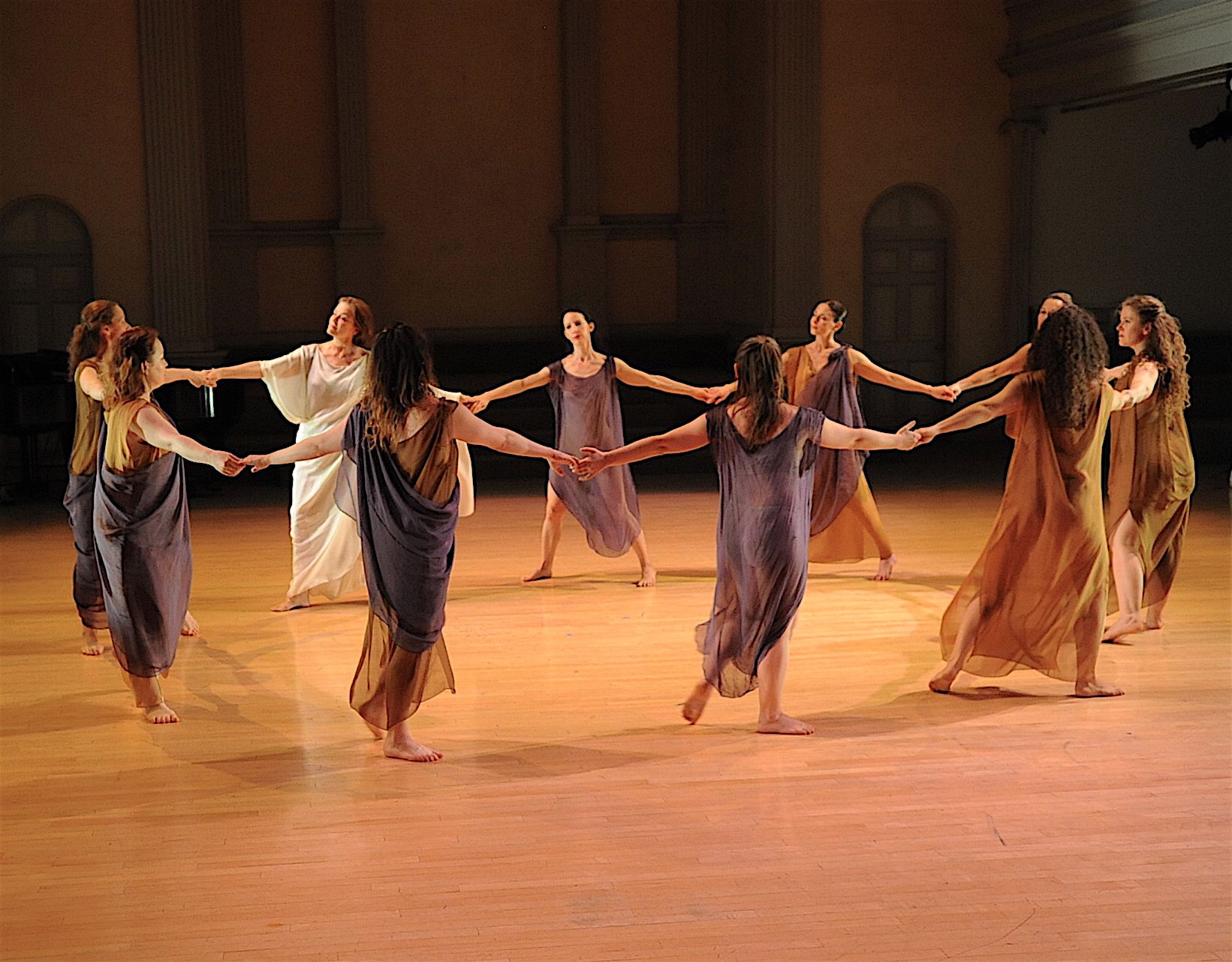 Ms. Gallant (clad in white in the above rehearsal photo) danced the leading role tonight in her re-imagining of the symphony’s Allegretto, and Loretta Thomas has choreographed the Presto. Watching the Gallant dancers in this evening’s performance, we are reminded of the unique position held by Isadora Duncan in the history of dance, and of the continuing necessity of seeing her dances lovingly revived and maintained, so that new generations can both honor and enjoy her work, both for its historical value and its continuing resonance in modern times.