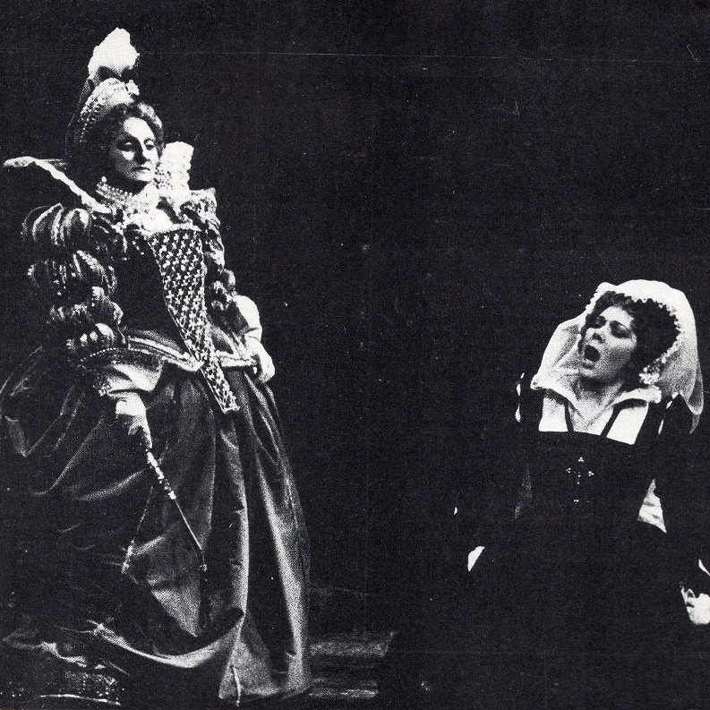 The fictitious meeting of Elizabeth I (Pauline Tinsley) and Mary Stuart (Dame Janet Baker) from Donizetti’s opera MARIA STUARDA, sung in English.