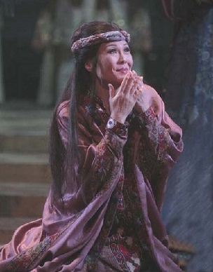 If her Wikipedia page is accurate, Hei-Kyung is now 58 years old. Her voice has retained its freshness thanks to her wisdom in choosing repertoire. Tonight both the beauty of her sound and the instinctive rightness of her phrasing gave the music a deeply feminine quality; she also has a feeling for the Italianate style that escapes many non-Italian-born singers. Both her arias were as finely sung as I’ve ever heard them, and her death scene was truly heart-rending. She received a vociferous ovation, very much deserved.