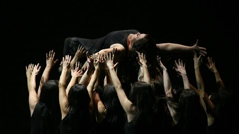 Above: Iréne Theorin as Elektra, borne aloft by the maids