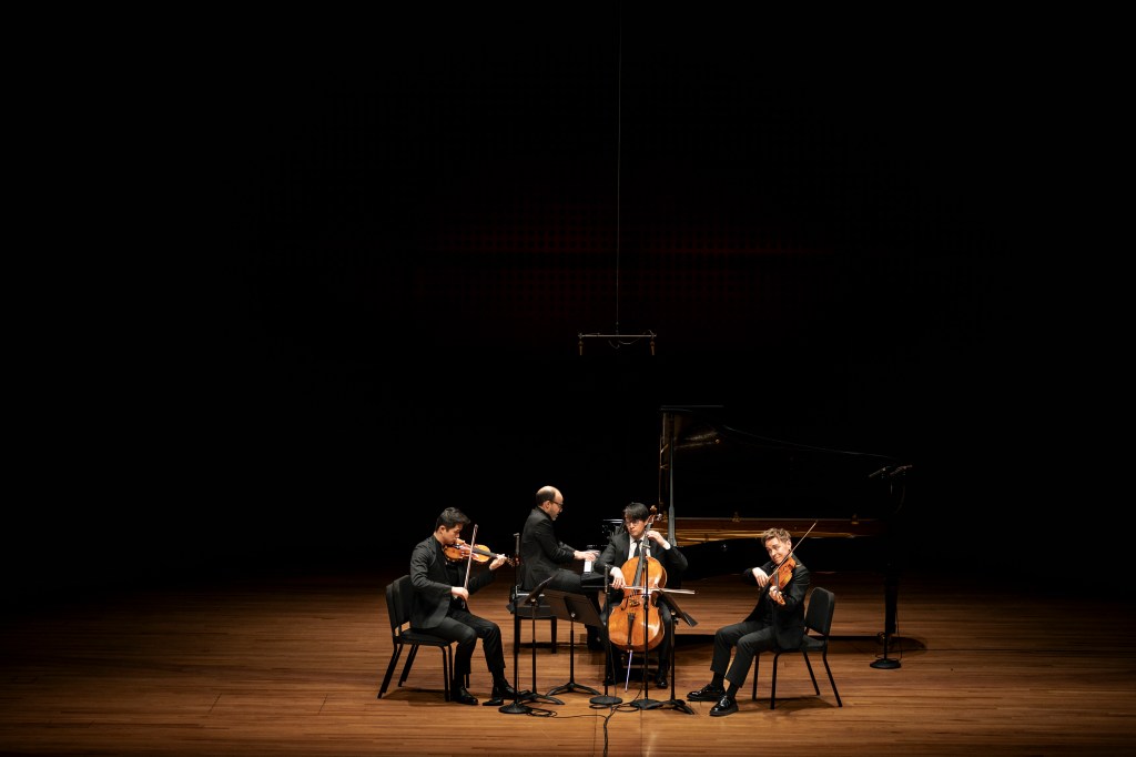 Above: Violinist Lun Li, pianist Orion Weiss, cellist David Requiro, and violist Matthew Lipman; photo by Paul Mardy