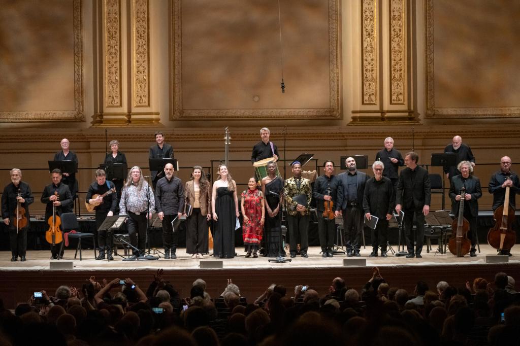 Savall did offer a redemptive and genuinely moving gesture as an encore at the end of the program. Bringing the evening back to the question of peace—offering, as he called it, “a prayer for peace” in the face of today’s violence and war—the collective of ensembles on the stage presented “Amazing Grace” with Bickersteth and Savall sharing the spotlight. The expressive low register of Savall’s treble viol wove a perfect braid with Bickersteth and the other vocalists. Here, finally, we get the sense that all musics, regardless of their origins, might share the same human impulse for harmony.