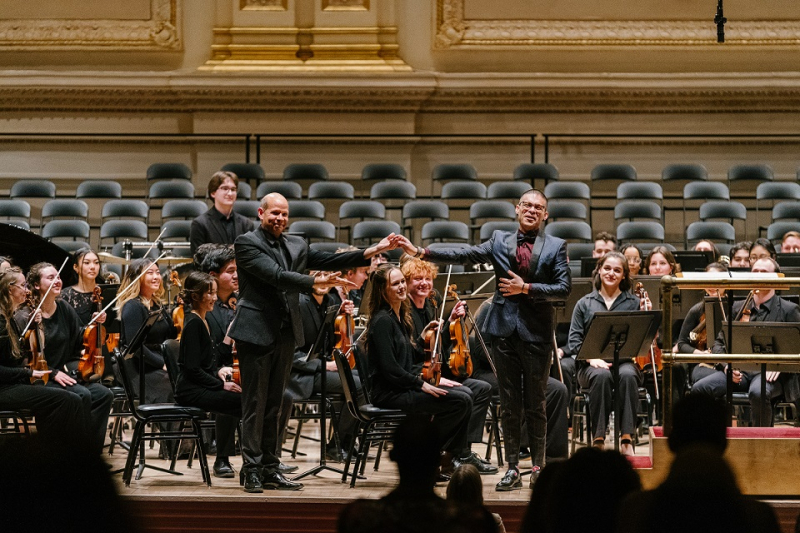 Above: Maestro Raphael Jiménez with the Oberlin Orchestra at Carnegie Hall; photo by Fadi Kheir