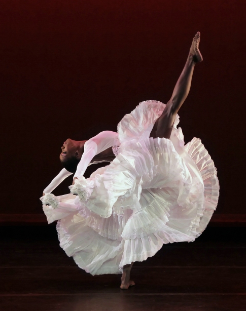 There is a lush saxophone melody to which Sara Mearns and Amar Ramasar dance a spacious pas de deux; there is a vivacious pas de quatre for Ms. Scheller, Tiler Peck, Gonzalo Garcia and Daniel Ulbricht. Wendy Whelan and Robert Fairchild dance a lovely nocturnal duet; then Wendy remains onstage, wandering among the corps dancers as they weave intricate patterns. Wendy’s solo shows her at her radiant best. Wendy and Maria Kowroski (who looked particularly sumptuous in her scarlet gown) dance in beautiful snyc to yet another familiar Bizet melody, and Maria has a gorgeous saxophone adagio with Tyler Angle. In a passage of pure seduction, Sara Mearns displays incredible star power, later joined by the men. The harp lends lyric mystery to a solo impressively danced by Tiler Peck which later extends into a pas de trois for her, Gonzalo and Daniel. Amar Ramasar races around the stage in a series of brilliant leaps. The eye is constantly drawn to one and then another of these charismatic dancers.