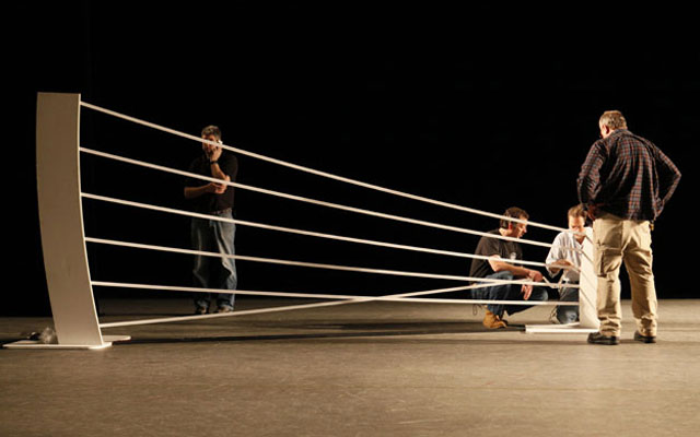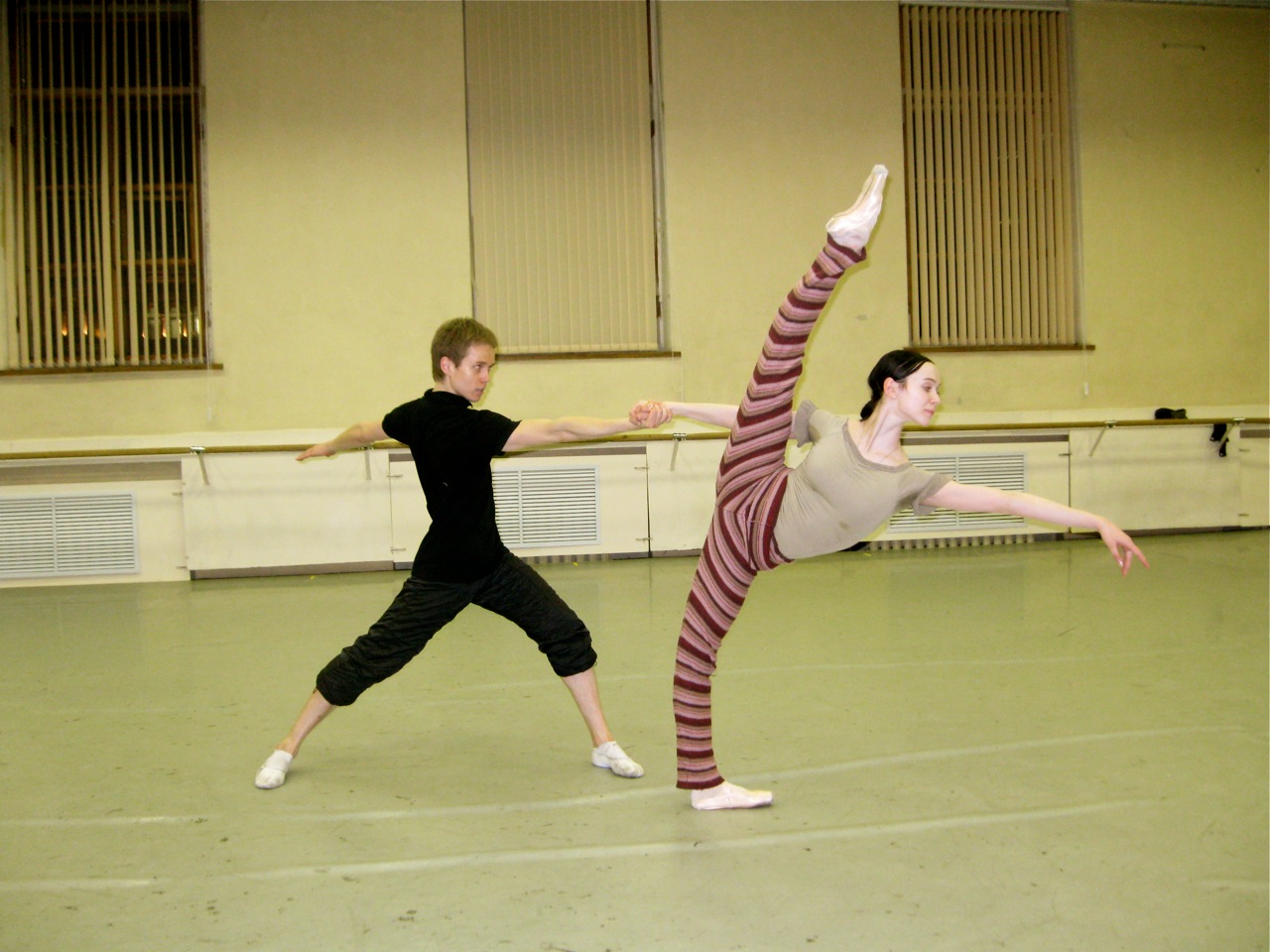 Saturday May 29, 2010 evening – Continuing their Architecture of Dance festival, New York City Ballet tonight presented the world premiere of Christopher Wheeldon’s ESTANCIA. Above, Tyler Angle and Tiler Peck rehearsing the Wheeldon in an Andrea Mohin photo…