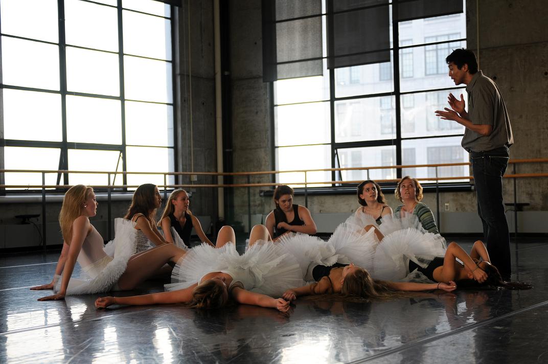 Rehearsal photo of Christopher working with the corps by Paul Kolnik. I’m hoping for some production photos soon. Among the girls at the ranch, Maya Collins continually caught my eye with her sparkling performance – she was in all three ballets tonight and was delightful in each.