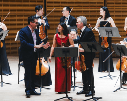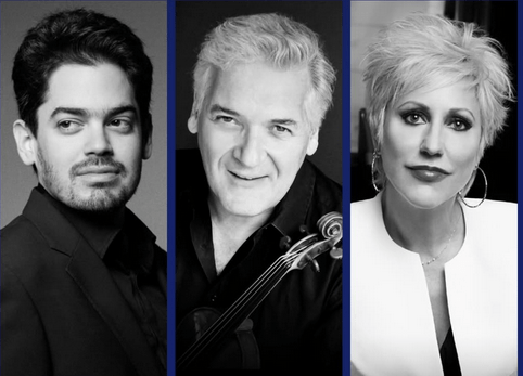 Above: Lahav Shani, Pinchas Zukerman, and Amanda Forsyth
