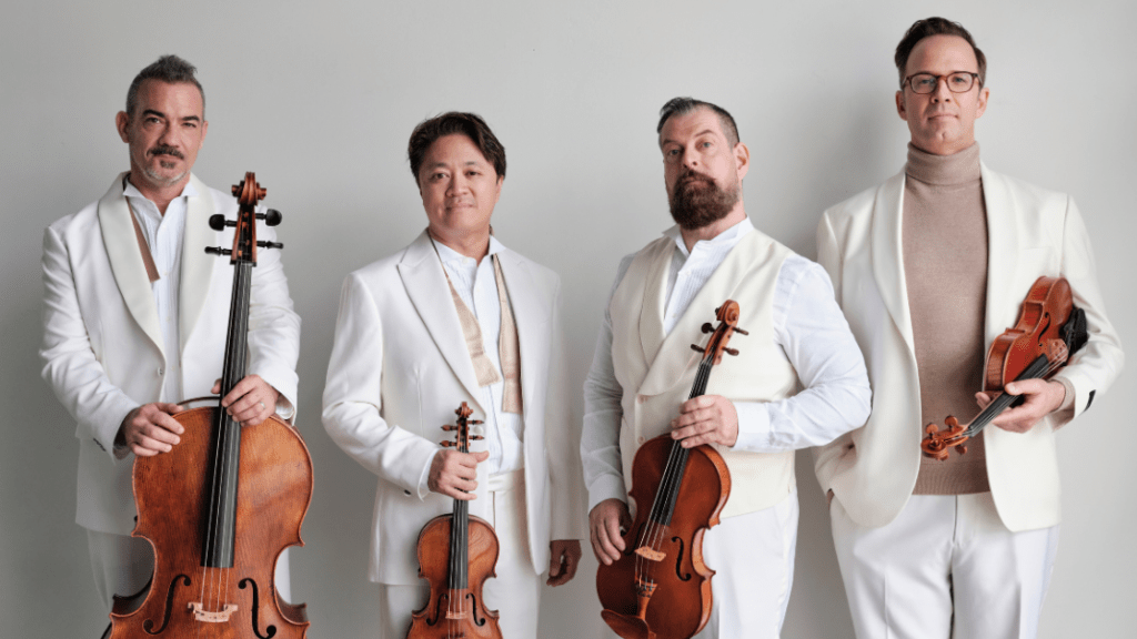 Above, the artists of the Miró String Quartet: Joshua Gindele, Daniel Ching, John Largess, and William Fedkenheuer. Photo from the Quartet’s website.