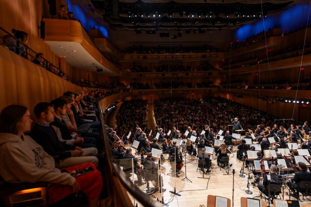 The first movement begins with intricate counterpoint between the various sections of the strings, which Robertson admirably shepherded. In full orchestra passages, the strings and brass did not always cohere, with the strings adopting a darker tone and stronger attacks while the brass were brighter and more rounded. Robertson gave ample breathing room to transitions within each movement, which at times let the momentum drift away.