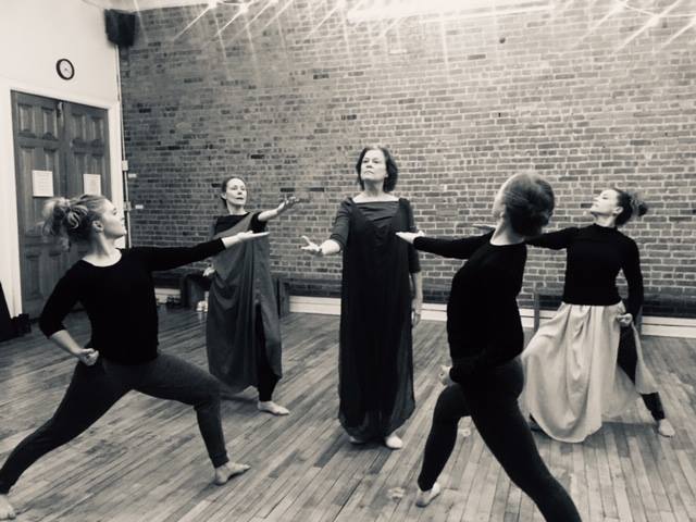 Above: Loretta Thomas and the ensemble rehearsing Isadora Duncan’s POLONAISE MILITAIRE