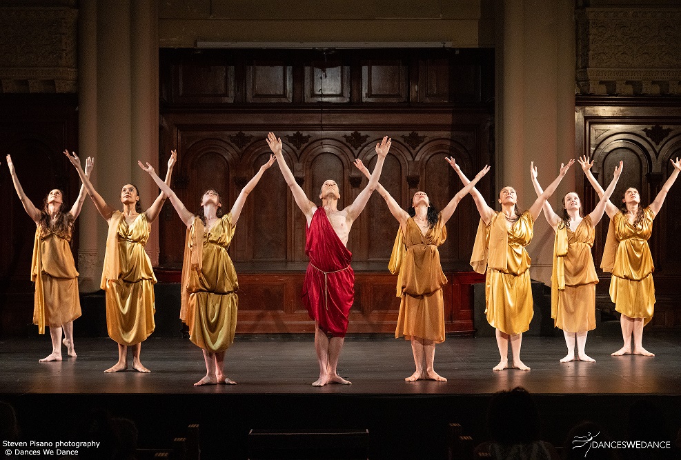 Above: Ian Spencer Bell and the ensemble in Isadora Duncan’s Schubert’s Symphony #9/Andante; photo by Steven Pisano. Click on the image to enlarge.