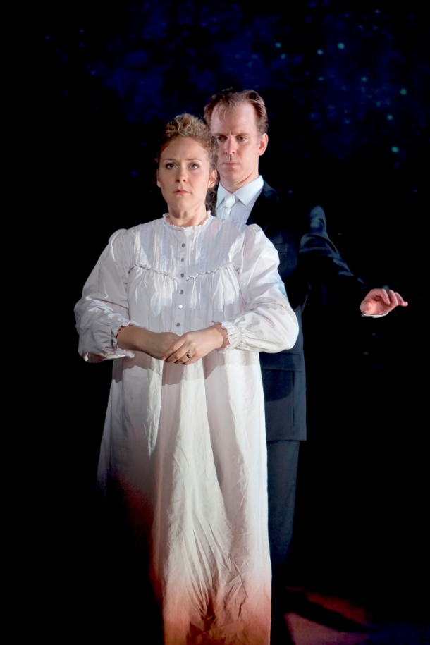 Friday November 11, 2011 – Above: Caitlin Lynch and Kevin Burdette in the long-awaited premiere performances of Nico Muhly’s DARK SISTERS, given by Gotham Chamber Opera. Photo: Richard Termine. The opera is co-commissioned and co-produced by Gotham Chamber Opera, Music-Theatre Group, and Opera Company of Philadelphia.