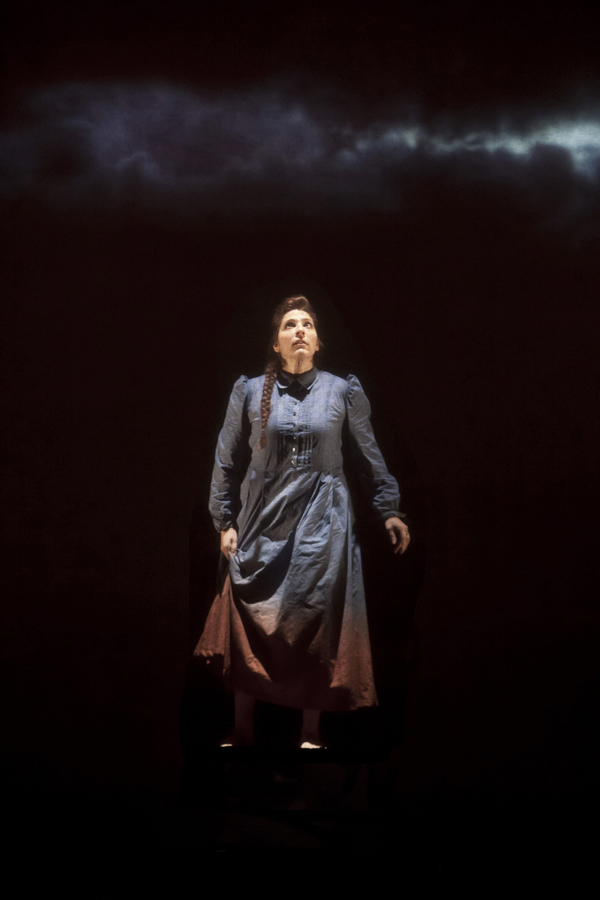 In the above photo by Richard Termine, mezzo-soprano Eve Gigliotti as Ruth. Her lonely monolog preceding her suicidal leap was one of the opera’s highlights. At her burial, The Prophet and the other wives intone the hymn ‘Abide With Me‘, a deft touch on composer Muhly’s part.