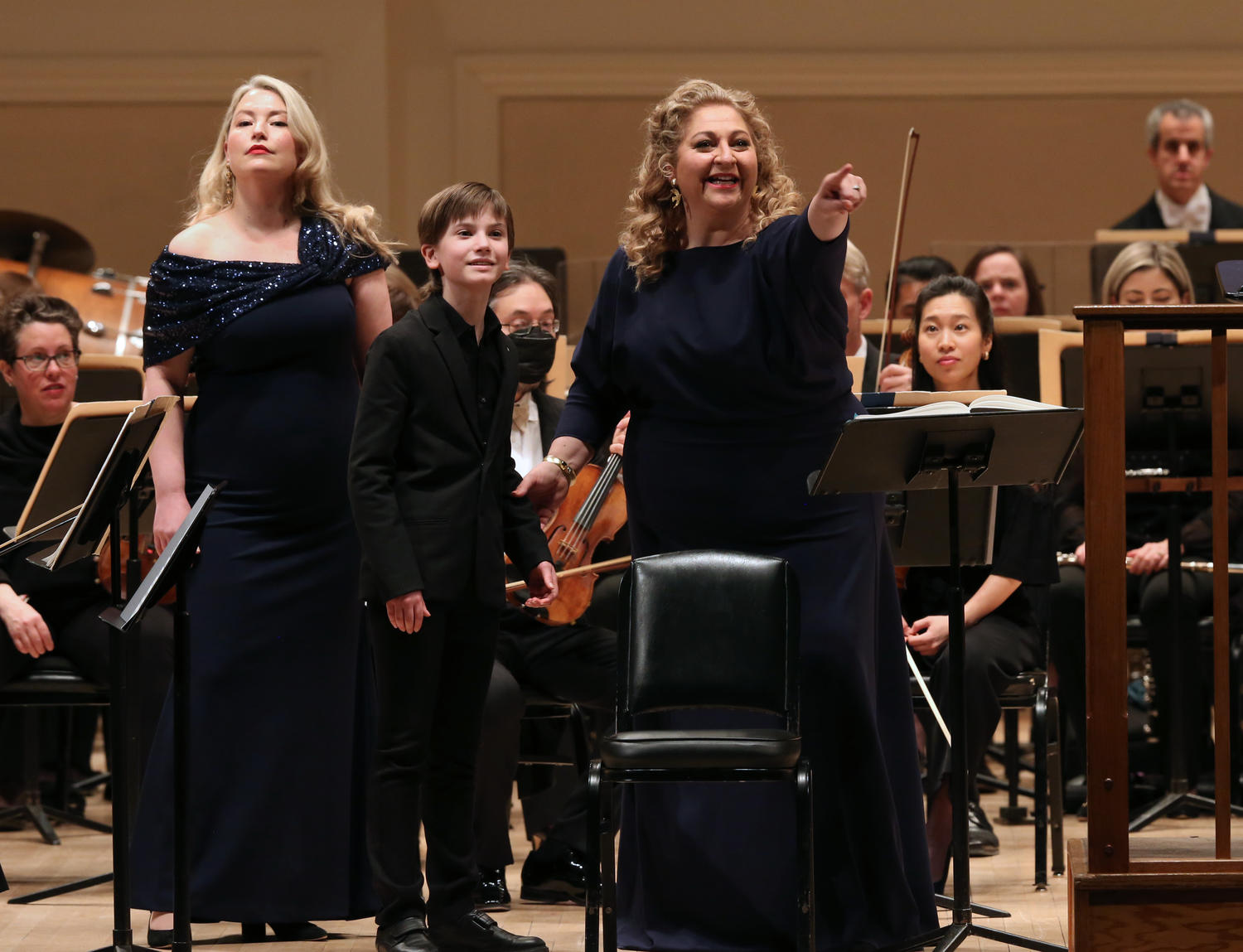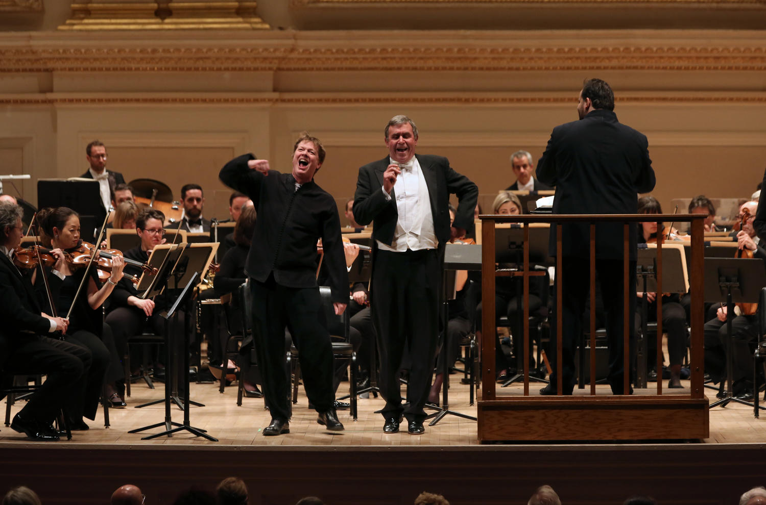 Above: Christine Goerke as Marie, Maestro Andris Nelsons on the podium, and baritone Bo Skovhus as Wozzeck; photo by Steve J Sherman, courtesy of Carnegie Hall