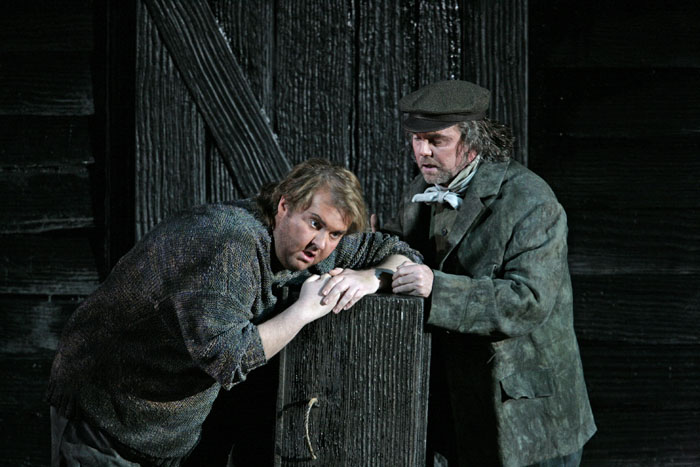 Above: Anthony Dean-Griffey as Grimes and Anthony Michaels-Moore as Balstrode; a MET Opera photo.
