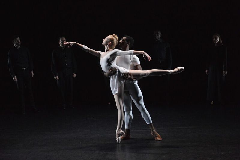 All five dancers appear in a diagonal, with a canonic dramatic port de bras motif, before Lydia Wellington and Daniel Applebaum meet again to end the ballet as in a fading dream.