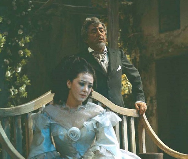 By chance, I came upon this lovely Louis Melançon photo (above) of Anna Moffo and Robert Merrill in Verdi’s LA TRAVIATA in the Met’s 1966 Cecil Beaton production of the Verdi classic, which evoked in me memories of their partnership in this opera. From Moffo”s debut in 1959 til her final Met appearance in a staged opera there in 1976, they sang these roles together 50 times with the Company, in New York and on tour. They also made a beautiful recording of the opera together for RCA. Listen to a portion of their Act II duet here.