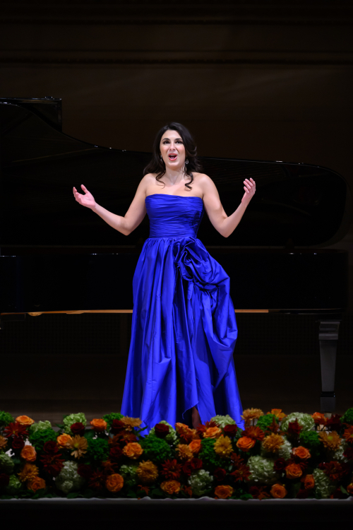 Thursday March 28th, 2024 – Earlier this year, I was looking to add a vocal recital – by a singer I had never previously heard, in an intimate setting, including some songs that would be brand new to me – to my late-winter calendar.  Flipping thru the Carnegie Hall brochure, I zeroed in on tonight’s offering at Weill Hall: Macedonian-Canadian mezzo-soprano Ema Nikolovska, with Howard Watkins at the piano. I listened to about ten seconds of her singing on YouTube and requested a ticket. I’m so glad I was there.