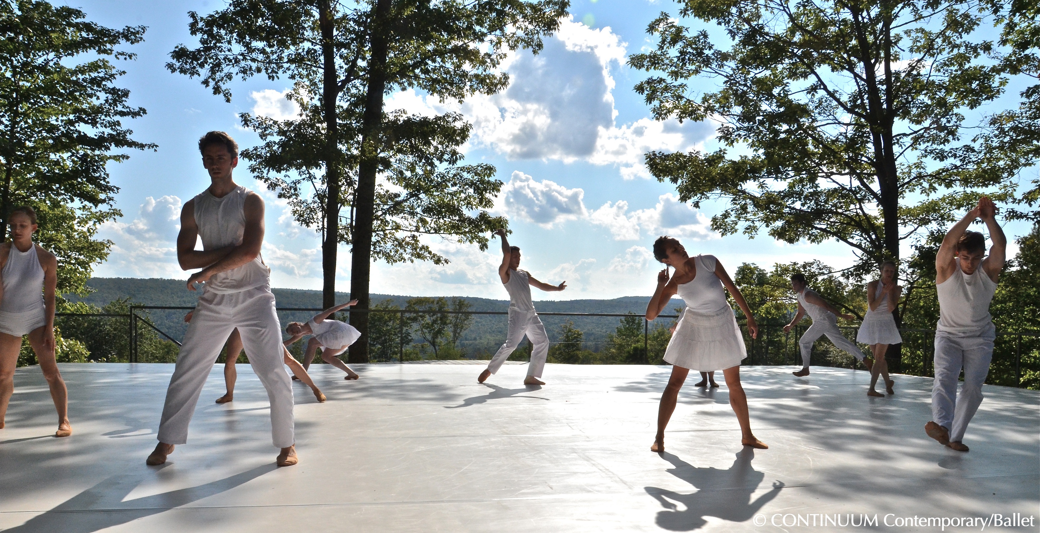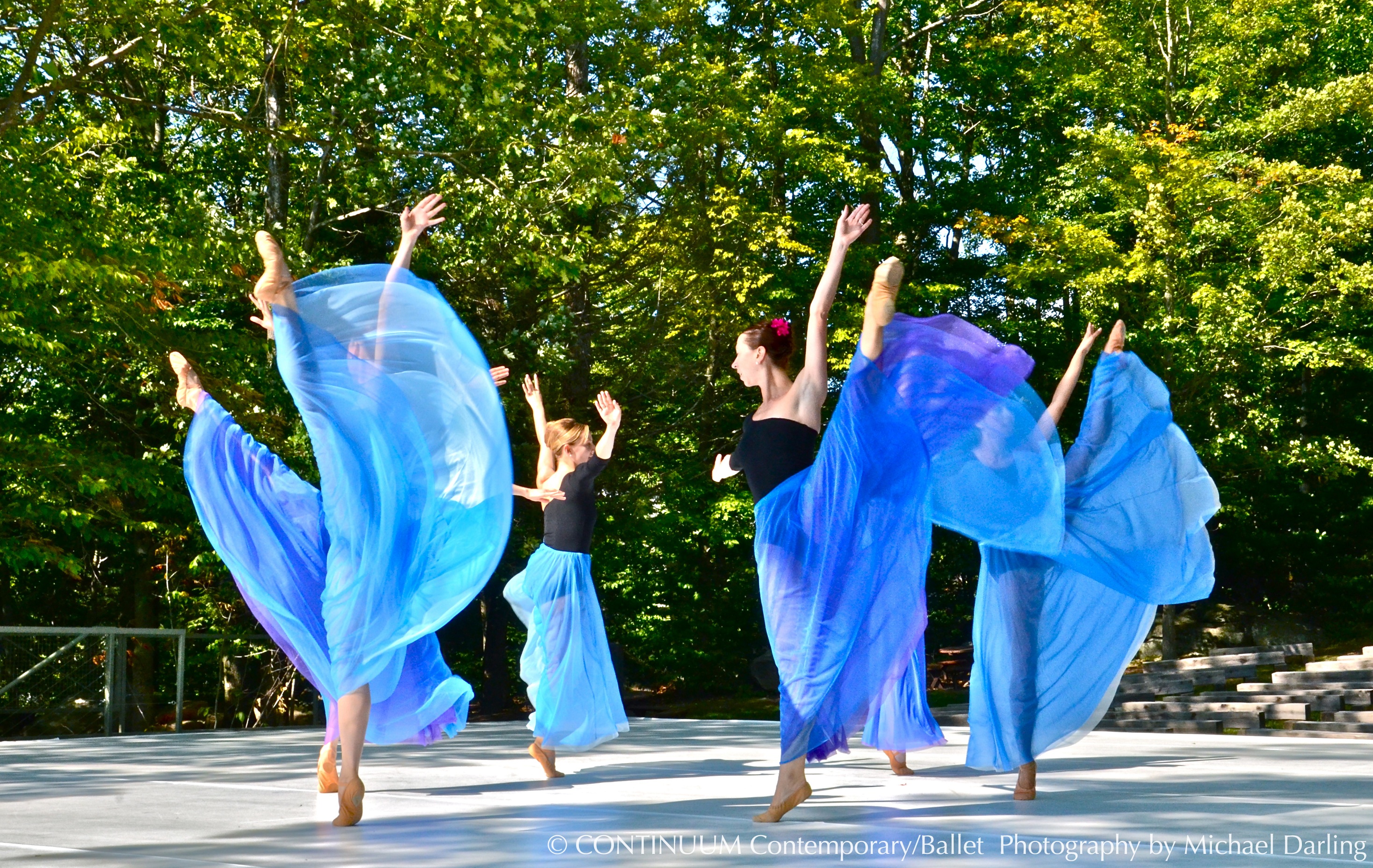 The evening’s largest piece, A Portrait of Growth, is an all-female ensemble work by Donna Salgado to music by the husband-and-wife duo Houses, is the programe’s finale. Exploring the development of self-identity, this dancework seems especially suited to a college-based company. The ten girls break from unison passages to individual expression; solos danced by Audrey Crabtree-Hannigan, Julia Davis-Porada and Melissa Kaufman-Gomez draw us to their distinctiveness. And there is a line-up from which each girl momentarily steps forward in a brief phrase with a personal hue. The ballet reflects a period of time when life seems fulls of promise and possibility.