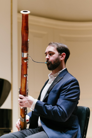 It was with J. S. Bach’s Brandenburg Concerto No. 5 that the evening closed. The large ensemble featured all the players from earlier in the evening, plus bassoonist Nik Hooks – a player with rich, amiable tone and agile technique – and the proverbially “tall, dark, and handsome” Iranian/Pakistani/American flautist, Amir Farsi: limpid of tone, with a personable presence as he bends and sways to the music. Mr. Hooks and Ms. Andrade provided a very high-class continuo, with Ms. Kim and Mr. Hong the supporting strings. Mr. Rengel and Mr. Farsi played magnificently, and there was truly a sense of magic in the hall as the performance unfolded.