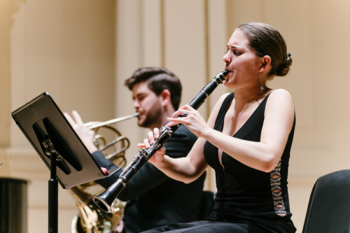 Bohuslav Jan Martinů’s rarely heard Quartet for Clarinet, Horn, Cello, and Side/Snare Drum, H. 139, dates from 1924. This rather quirky mix of instruments does – as hornist Cort Roberts pointed out in his introductory remarks – represent the four ‘families’ of the symphony orchestra: strings, winds, brass, and percussion. What delightful sounds we heard from Mr. Roberts and his colleagues: Yasmina Spiegelberg (clarinet), Laura Andrade (cello), and Garrett Arney (snare drum).