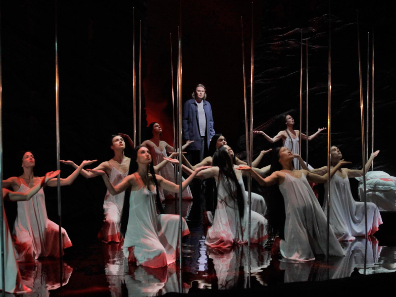 Bringing the house lights up a bit prior to the ensuing boudoir scene really shatters the mood; there’s a late seating, with latecomers stumbling about in the near darkness whilst people who’d arrived on time think it’s a bathroom break. Cellphones come on throughout the hall. Chatter spoils the ensuing opening harp solo as the women’s chorus seeks to restore the mood after this intrusion of reality.