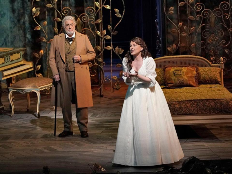 Amartuvshin Enkhbat is authoritative and truly impressive as he tells his daughter what she must now do in the name of her country. His wonderful phrasing as he manipulates her leads to some very fine cantabile passages from Ms. Blue. The orchestra again overplays, but the baritone rises to the challenge with an epic “Non sei mia figlia!” Ms. Blue’s anguish is palpably voiced, and her father responds with the inspiring “Pensa che un popolo, vinto, straziato!”; here the orchestra gave truly marvelous support, making it a highlight of the performance.
