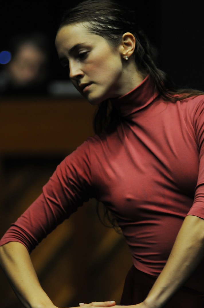 Later in the evening we saw Tony Morales’ AMOR BRUTAL, a narrative work that I’ve watched being developed in the studio over time. In August, Matt Murphy produced some beautiful images at a rehearsal of the piece. Soft billows of smoke waft across the stage as singer Mary Ann Stewart and pianist Sandro Russo (performing live onstage) embark on the Manuel de Falla songs which provide the setting for this domestic drama. Nicole Corea and Leonel Linares have reached the point of no return in their marital conflict and now it’s a question of where the couple’s three daughters will set their allegiance. Nicole, dancing with her ever-radiant personal commitment, naturally assumes that her girls will be in her camp. But it’s the n’er-do-well father, danced with easy charm by Leonel, who has his daughters in the palm of his hand. The work ends with Nicole completely marginalized; the sisters (Kate Loh, Alison Cook Beatty, MarieLorene Fichaux) turn their backs on her and her husband slips out of the picture entirely. Adding a last personal touch to this work, the concluding song Amor Brutal is performed on a recording by Tony Morales’ father, who passed away earlier this year.