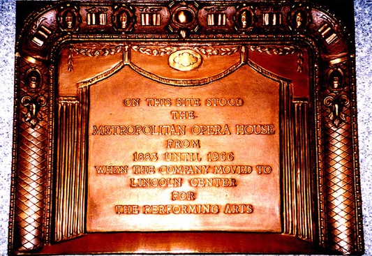 This plaque marked the spot where the Old Met stood, on 39th Street and Broadway: