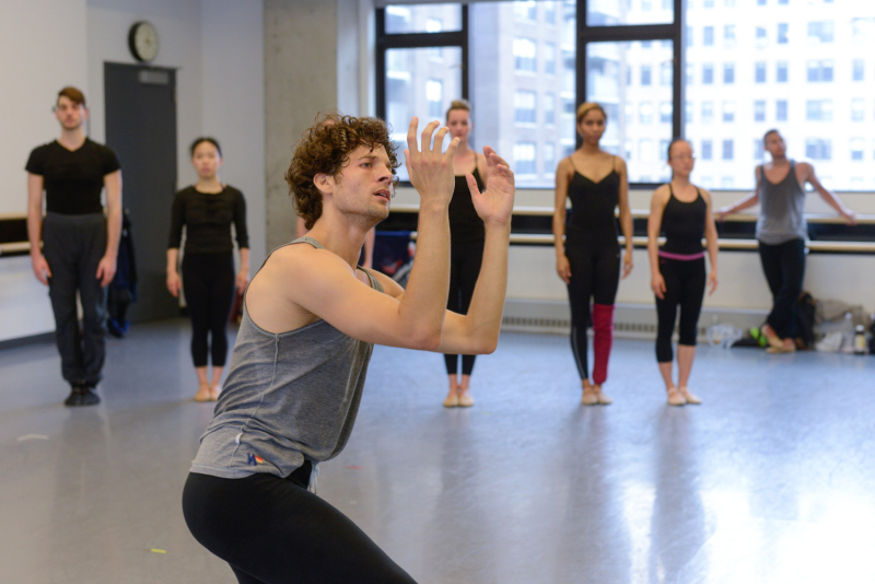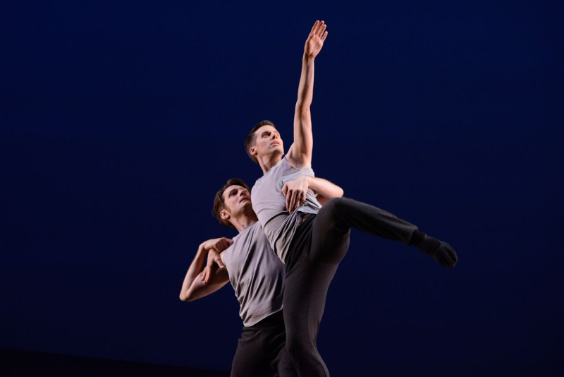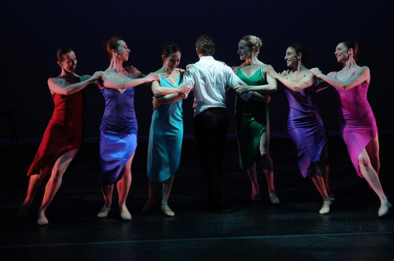 At first the five women seem to be in their own world, moving with quiet intensity in patterns which seem to express that they are an isolated group but not discontented with their situation. As the four men join them, the movement becomes more expansive. Couples form, and the large group often splinters into trios who perform synchronized gestures as the dancing swirls around them; I especially liked this aspect of the piece. The work is both visually and musically extremely satisfying and again the individual dancers continually draw the eye from one to another. Jessica Sand, Tucker Ty Davis, Kerry Shea and the blonde Eric Vlach were outstanding in the leading roles here. The ensemble were anything but anonymous: rather each dancer makes a personal mark on the choreography. I look forward to putting names to faces so that I can properly enthuse over their individual efforts.