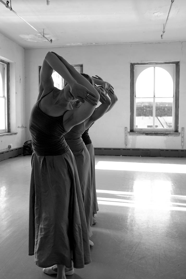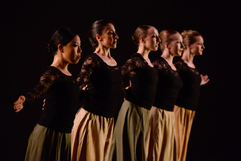 After a very short break, all nine of the Company’s dancers appeared in the untitled Gorecki. Still a work in progess, the piece uses part of the composer’s Harpsichord Concerto (‘…like the score of an old horror movie”…as Lydia aptly decribed it) and part of his String Quartet #1. Lydia stated that the two movements may eventually have a connecting interlude but I didn’t think it needed anything more; it looks so good and responds so well to the music just as it is.