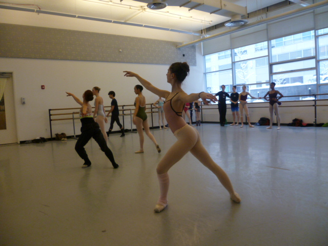 First, a class. The dancers of Lydia’s company come from varied backgrounds. Deborah, who teaches Company class weekly for LJD, has been imbuing a feeling of stylistic unity in the dancers. Lydia’s choreographic vision is an unusual fusion of ballet and contemporary; Deborah’s class work places an emphasis on ballet while at the same time encouraging the individuality of expression of each dancer. It seems like a paradox, but it’s happening.