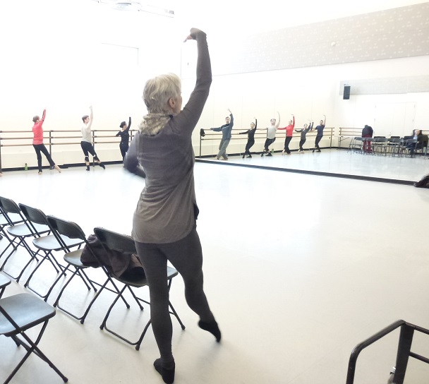 Sunday March 23, 2014 – Friends – long-time and new – of Lydia Johnson Dance gathered at Manhattan Movement and Arts Center this afternoon for a salon/studio presentation of Lydia’s latest work-in-progress, set to the Mozart Fantasy in C-minor, K. 475. Wearing one of her many hats, the extraordinary Deborah Wingert – teacher, choreographer, stager for the Balanchine Trust, and ballet mistress for Lydia Johnson Dance – gave a pre-salon class, demonstrated her inspirational coaching abilities, and spoke of her life as a dancer whose career took wing with Balanchine’s blessing.