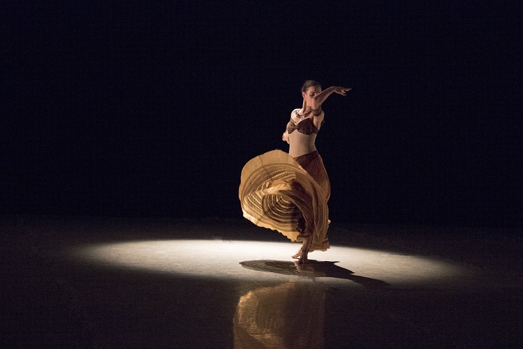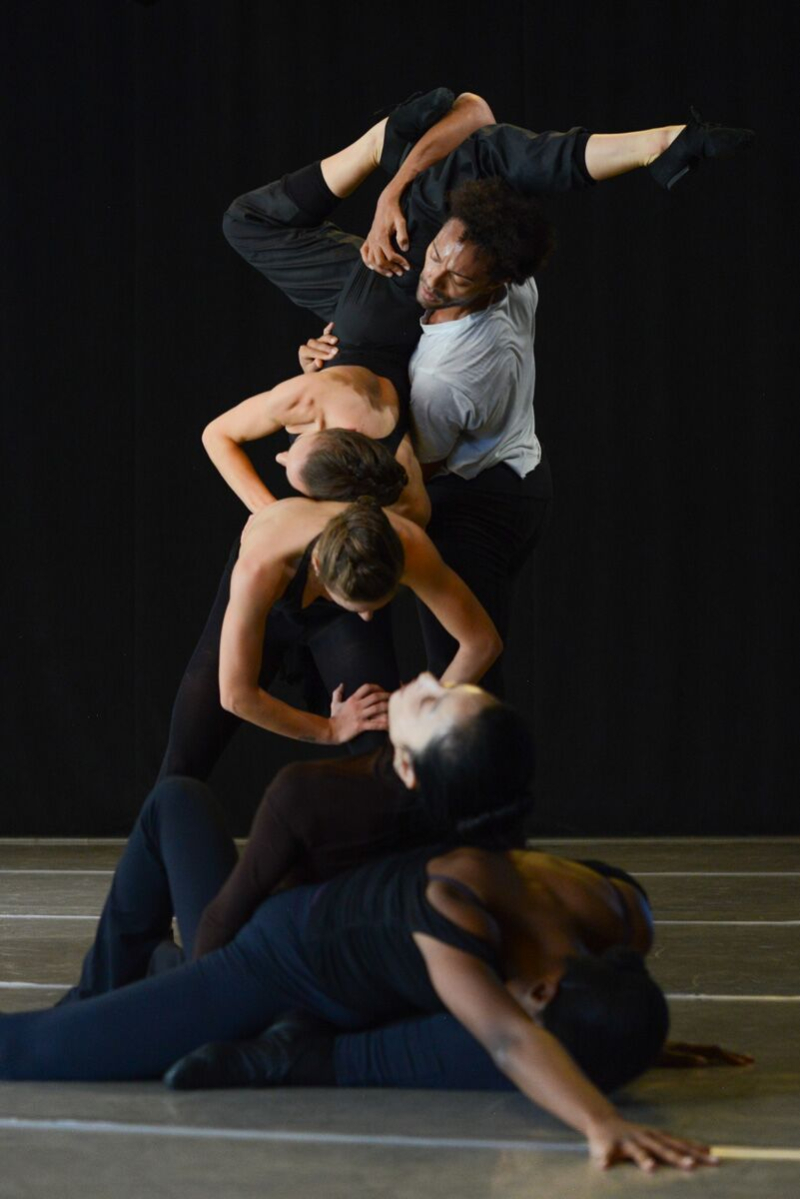 Lloyd Knight’s solo (above photo by Melissa Sherwood), set to sinister music, is riveting. Rhythmic variety, and ritualistic acts, carry the piece eerily forward. Anne O’Donnell’s solo is so expressive, and James Anthony has an opportunity to shine.