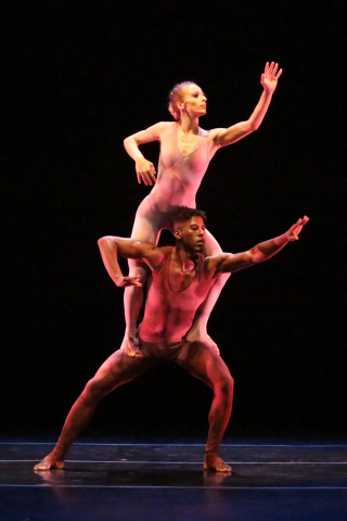 Now Lloyd Knight (above) appears, striking poses in a spellbinding opening solo which develops into a stage-filling dance. Ms. Souder joins him for a duet in which an electric current seems to pass between them; their intimate partnering is at once sensual and ritualistic.