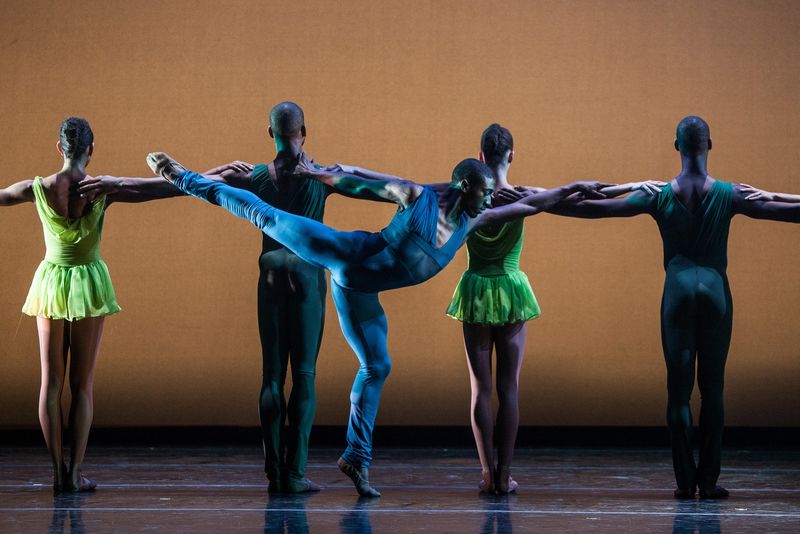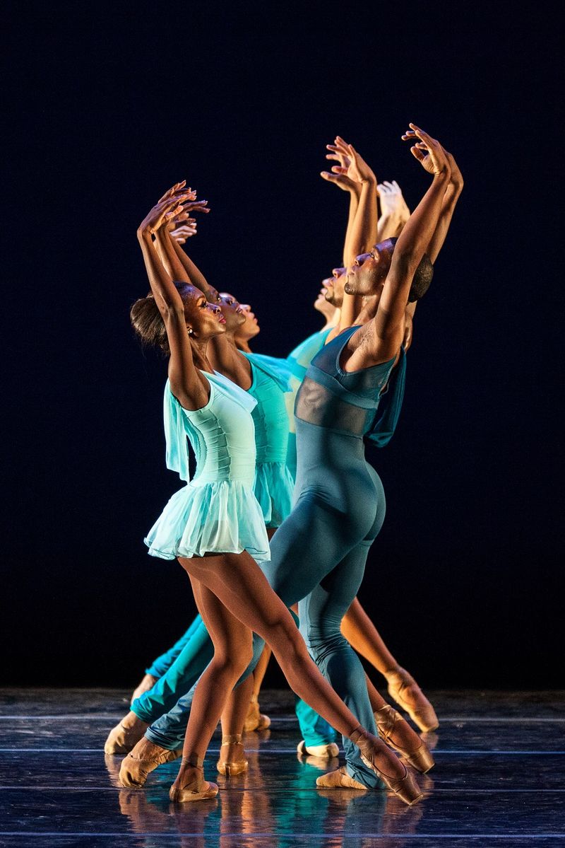 Following the interval, the premiere of a new duet, dear and blackbirds, was danced by Ashley Laracey and Troy Schumacher to music by Ellis Ludwig-Leone; again, a poem by Cynthia Zarin was the frame of reference. Troy had not originally planned to dance in the performance this evening, but he stepped in on short notce after a colleague sustained an injury. This pas de deux had a Jerome Robbins flavour, the couple exploring the possibilities of mutual interest, alternately hesitant and impetuous. Romantic partnering with touches of playfulness give way to the two dancers trading short phrases. Ashley Laracey displayed the lovely qualities of lyricism that have kept her shining in my dance firmament since I first saw her onstage.