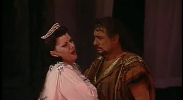There’s another impressive voice to be heard in this Mexico City performance: basso Roberto Silva, who sings Ramfis. Silva sustains a powerful note in the phrase “Per tua man diventi ai nemici terror, folgore…morte!” during the Temple Scene. Silva holds his own against the Radames of Mario del Monaco.