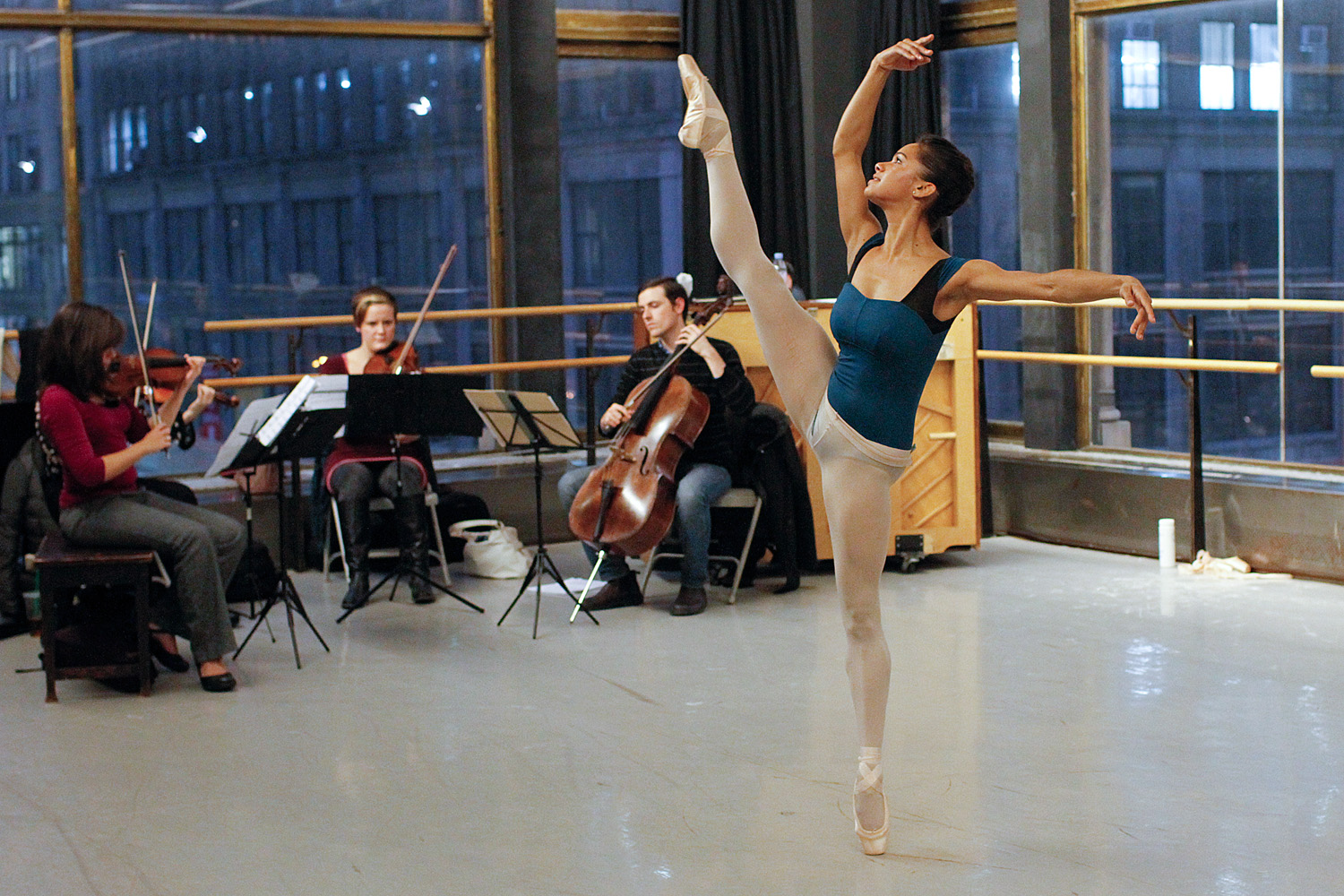 Wednesday April 25, 2012 – “You’ll be close enough to see us sweat and breathe,” said ballerina Michele Wiles in a brief film shown at the start of this evening’s presentation by Ballet Next. She was right, and there’s nothing more beautiful – for me at least – than watching dancers dance, especially at close range. Some dance-goers want to see an effortless sheen of ‘artistry’ which masks the physicality of the dance; myself, I love to see the body working, the minute flickerings of facial expression as the dancer ‘edits’ herself, the sense of stretch as the muscles respond, and the mechanics of delivering a triple pirouette. In a large theatrical setting, you’re at a remove from all of this. Tonight at Manhattan Movement and Arts Center, the dancers exposed themselves to our keenest scrutiny. They looked superb.