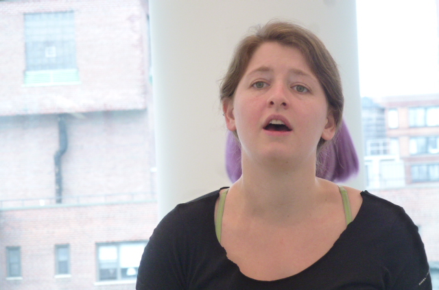 When I arrived this morning, the Saariaho portion of “I Am” was being rehearsed, with dancers Kristine Butler, Traci Finch, and Amber Neff; members of the vocal ensemble Ekmeles (Charlotte Mundy, Mary Mackenzie, and Elisa Sutherland) not only sing but participate in the choreography, and NCB’s violinist Doori Na and pianist Melody Fader were on hand to play the magical music of Ms. Saariaho.