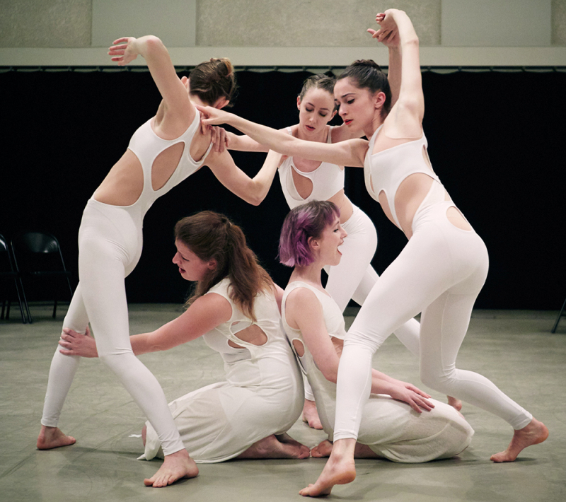 In the opening moments of this ballet, varying trios of women seem to shut out the fourth. A solo for Elizabeth Brown highlights this dancer’s beautiful arms and hands. Amber Neff and Kristy Butler have an animated duet that evolves into a slow, stretchy, intimate partnership. Elizabeth and Madeleine dance in sync, then Elizabeth and Amber team up.