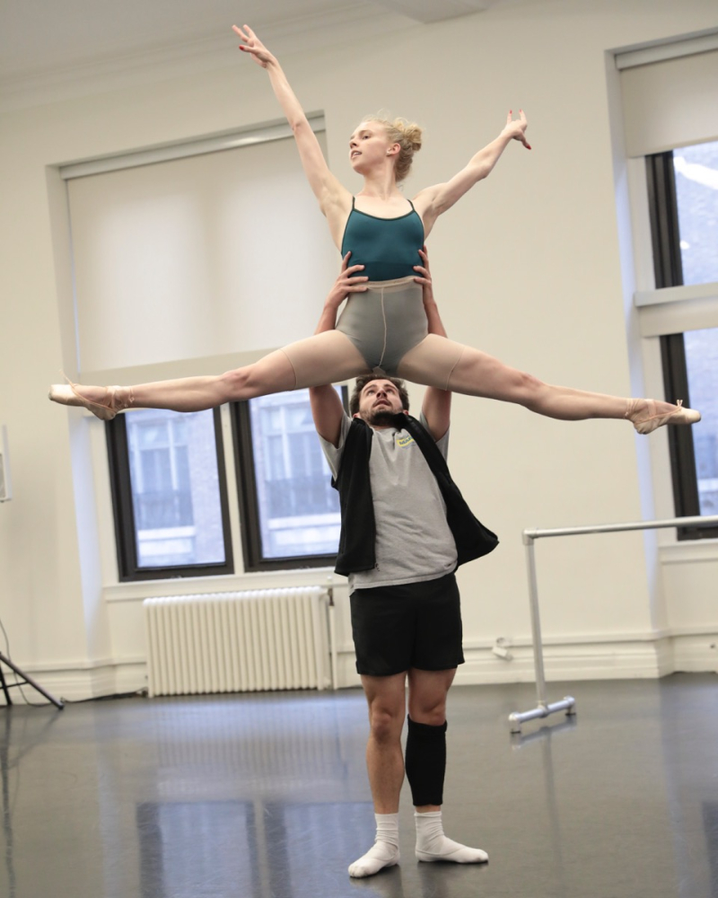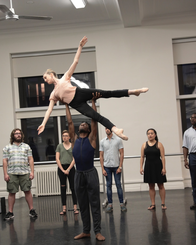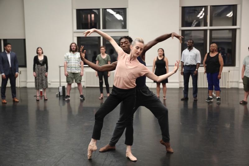 …as Ms. Walker and Mr. Angle dance a pas de deux while their colleagues eavesdrop. The ballet ends with an upbeat feeling.