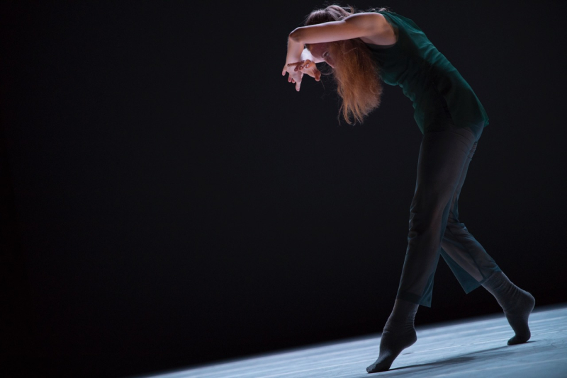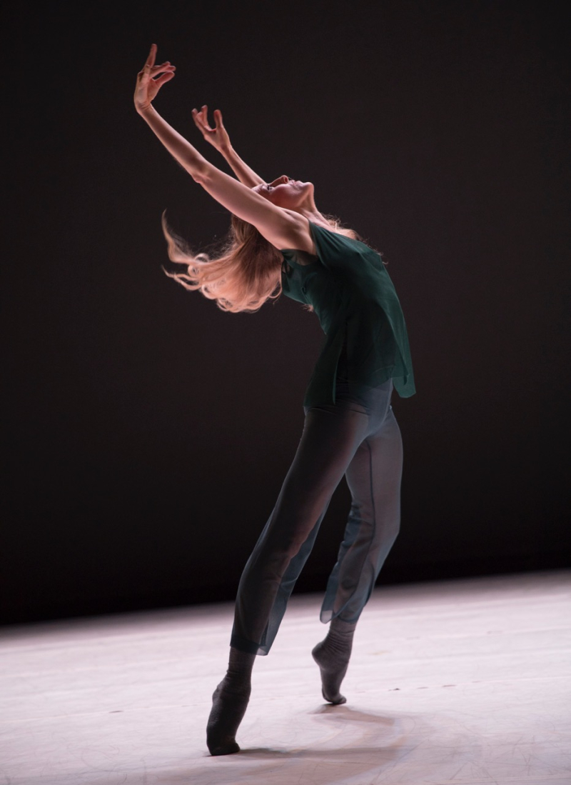 With the string players back in the pit to play movements of three Marc Mellits string quartets, the ballet opens with Wendy – hair down, in a casual outfit and wearing socks – facing upstage. She begins to move, and within about three seconds we are totally under her spell: her most subtle gestures lure the viewer in. A flow of dance commences, with a searching air and marked by pauses as if she was examining the terrain along which her quest carries her. Mesmerizing at every single moment, Wendy transforms a prayerful gesture into an act of wonderment.