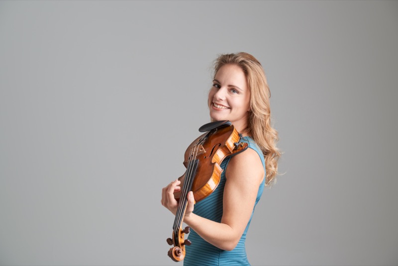 Violinist Julia Fischer then joined the orchestra for Mendelssohn’s Violin Concerto in E-minor. This was my first opportunity to hear Ms. Fischer playing live; she sounded marvelous and looked fetching is a deep grey gown shot thru with glimmering silver. There’s shining silver in her sleek tone as well.